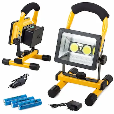 Wielofunkcyjna dwustronna latarka przenośna, zasilana energią słoneczną lub akumulatorem.